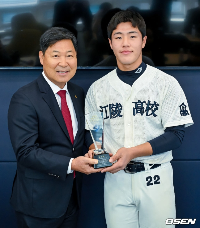 SSG 신인 이율예가 19일 서울시 도곡동 야구회관에서 열린 제8회 이만수 포수상 및 홈런상 시상식에서 포수상을 수상하고 취재진과 인터뷰에 응하고 있다. /사진=김동윤 기자SSG 랜더스 2025 신인 이율예(18·강릉고)가 이만수 포수상을 수상하며 고교 최고 포수로 인정받았다.이율예는 19일 오후 2시 서울시 강남구 도곡동 KBO 야구회관에서 열린 제8회 이만수 포수상 및 홈런상 시상식에서 포수상을 받았다. 다른 하나인 홈런상에는 함수호(18·대구상원고)가 선정되면서 두 사람은 각각 상금 100만 원과 500만 원 상당의 상품을 받았다.