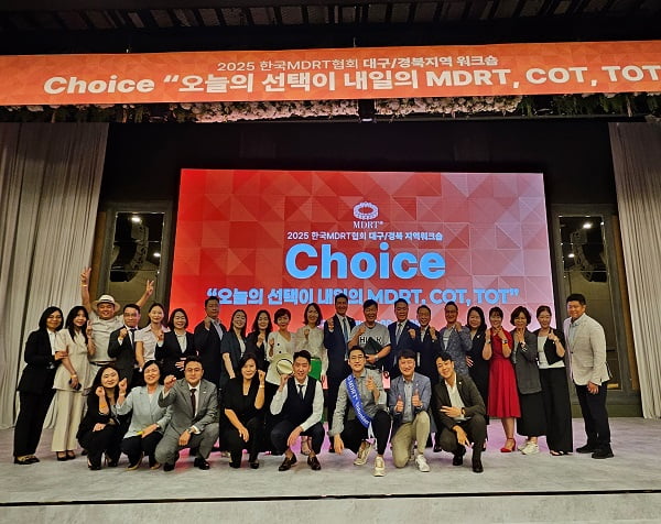 한국MDRT협회, 대구·경북 지역 워크숍 성료입력2025.08.13. 오전 11:30기사원문1댓글본문 요약봇텍스트 음성 변환 서비스 사용하기글자 크기 변경하기SNS 보내기인쇄하기한… 더보기